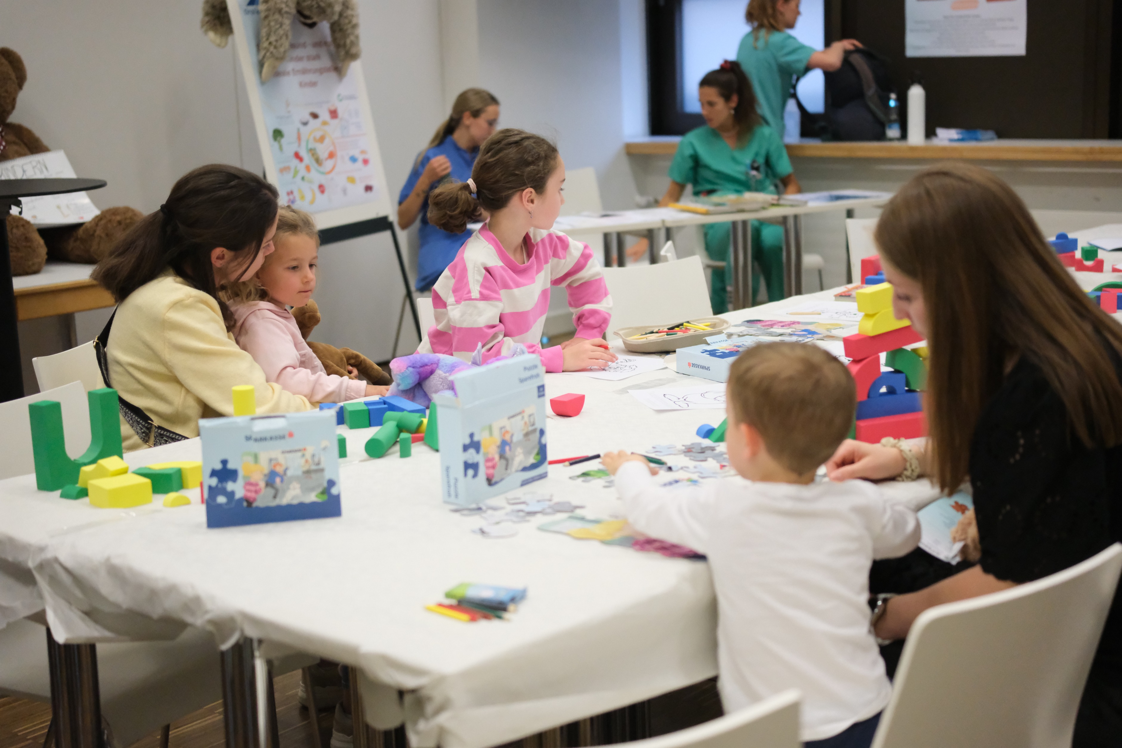 Bei uns im Teddybärkrankenhaus können Kinder spielerisch mit ihren Teddys erfahren, wie eine Ergotherapiesitzung aussieht und was sie dabei lernen können.